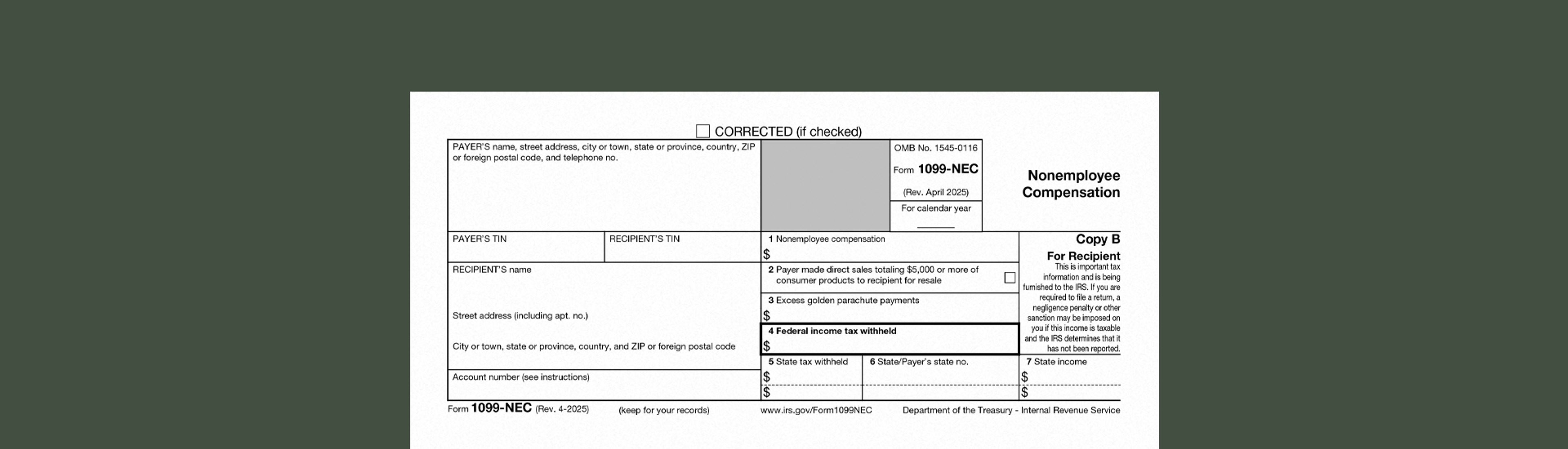 If you’re filing a 1099-NEC for payments you made, you must send a copy to the recipient (Copy B) by January 31, 2025.