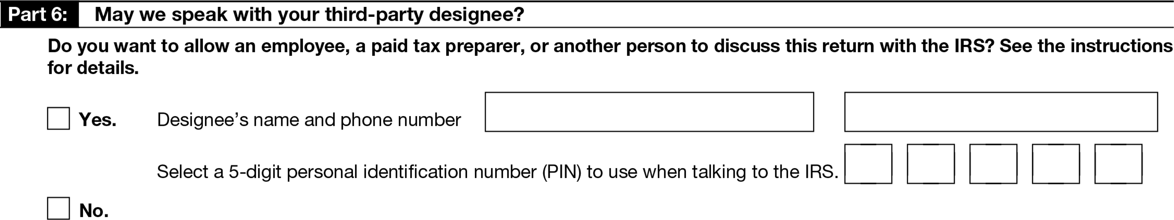 Complete these sections if you’re paying someone (e.g. an accountant, representative, tax preparer) to help you prepare this tax return and you want to authorize them to speak to the IRS about this Form 940 on your behalf. This is also where you or whoever is responsible for filing Form 940 signs their name.