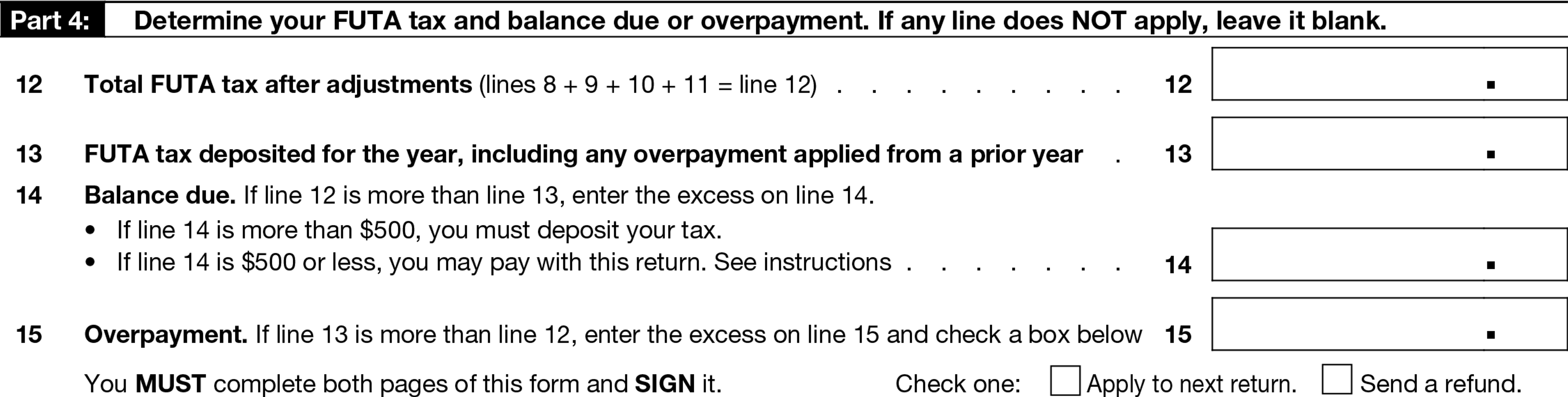 Part 4: Calculating total FUTA overpayment or balance due