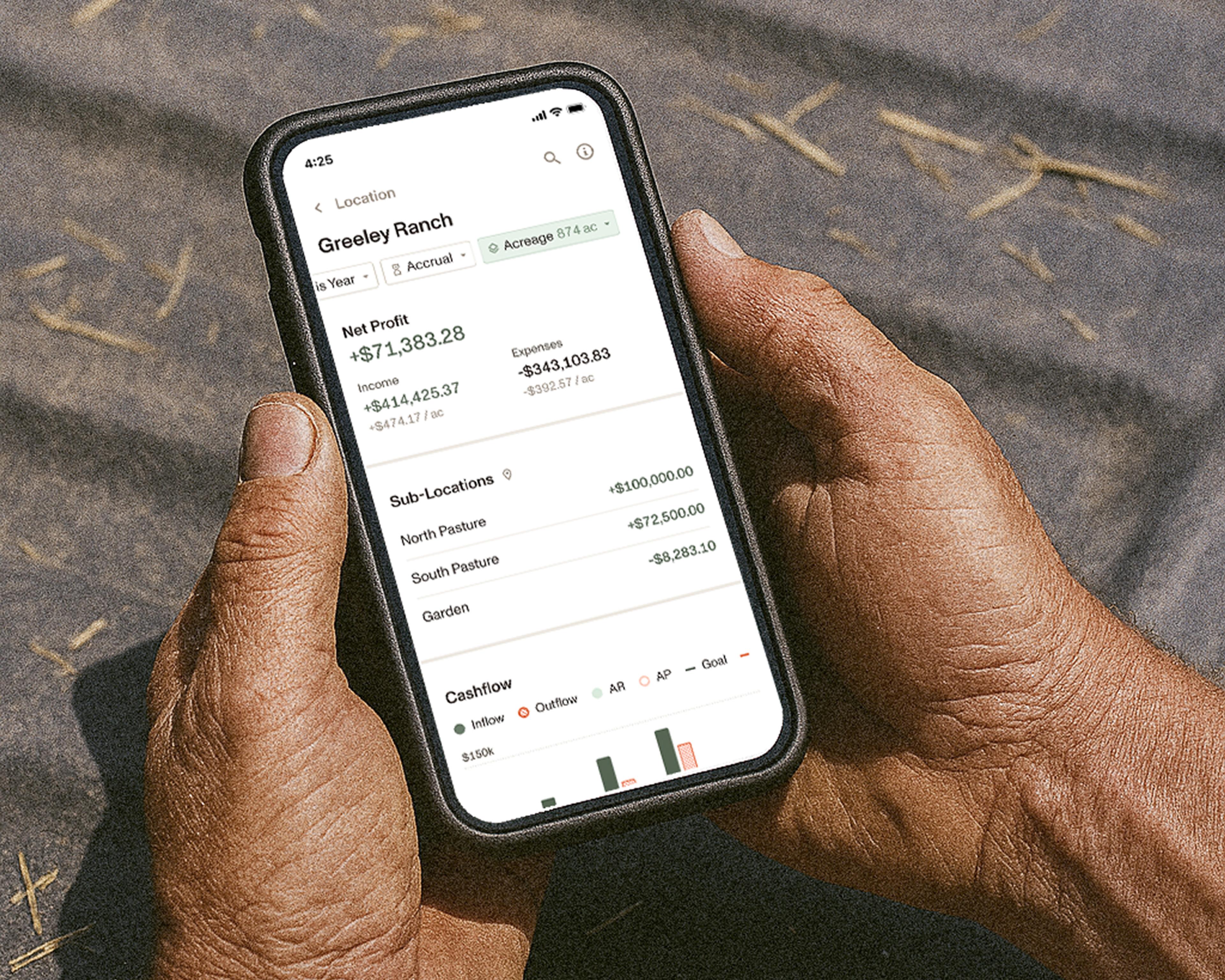 Finally know your cost of production. Track profit by enterprise, location, or project. Easily split transactions by line item or percentage, and find your breakeven by acre, unit, or head.