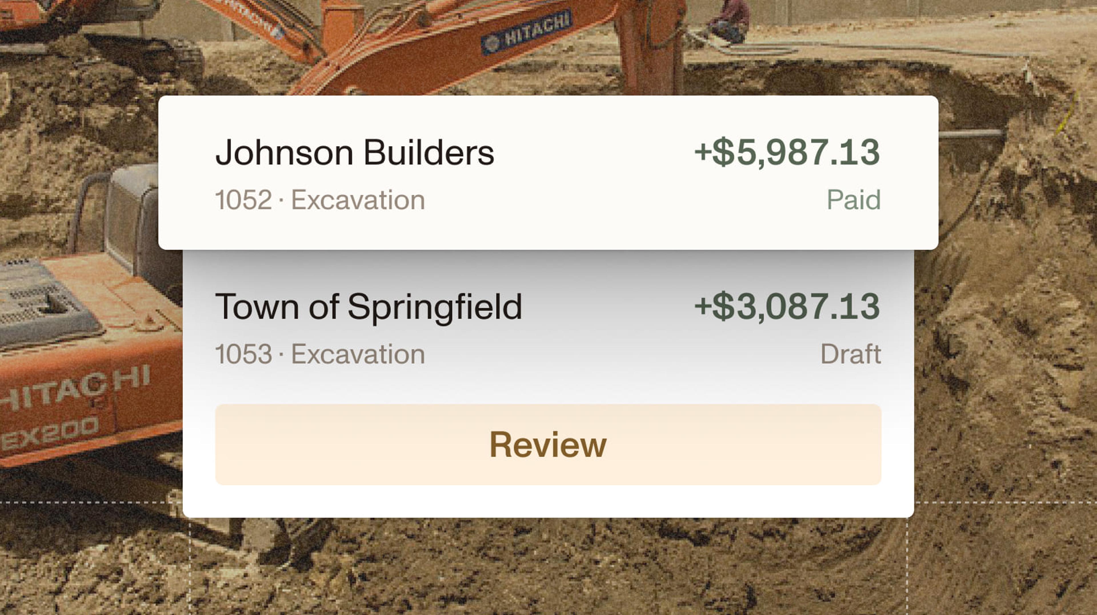 Handle all your back office work from the truck, job site, lumber yard... wherever you do business. Use the mobile app to capture receipts, issue and send invoices, pay bills, and more all with a few taps.