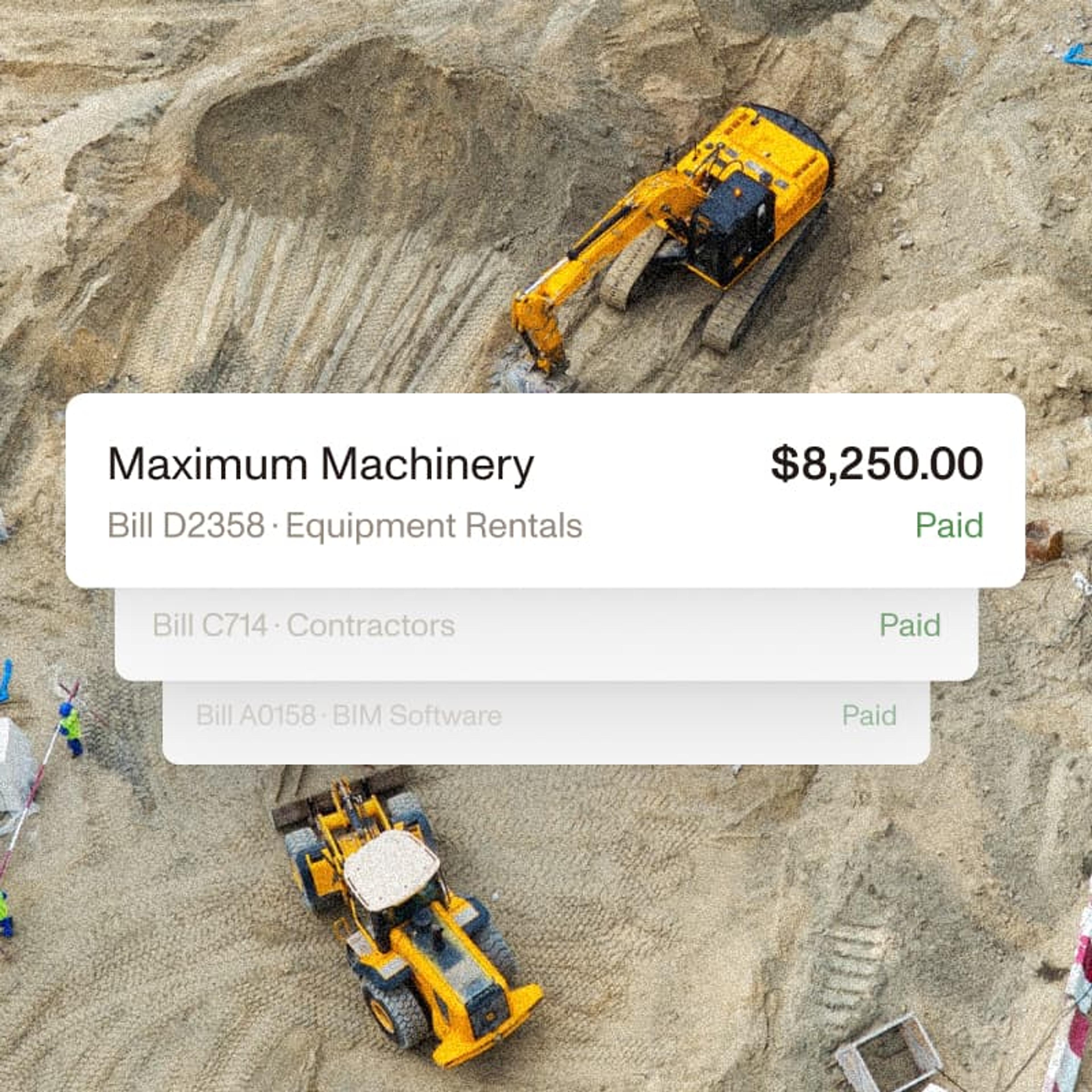 Issue cards with customizable spending limits for expense reporting on the job site or from the office. Get real-time visibility into transactions to gather documentation and prevent overspending.