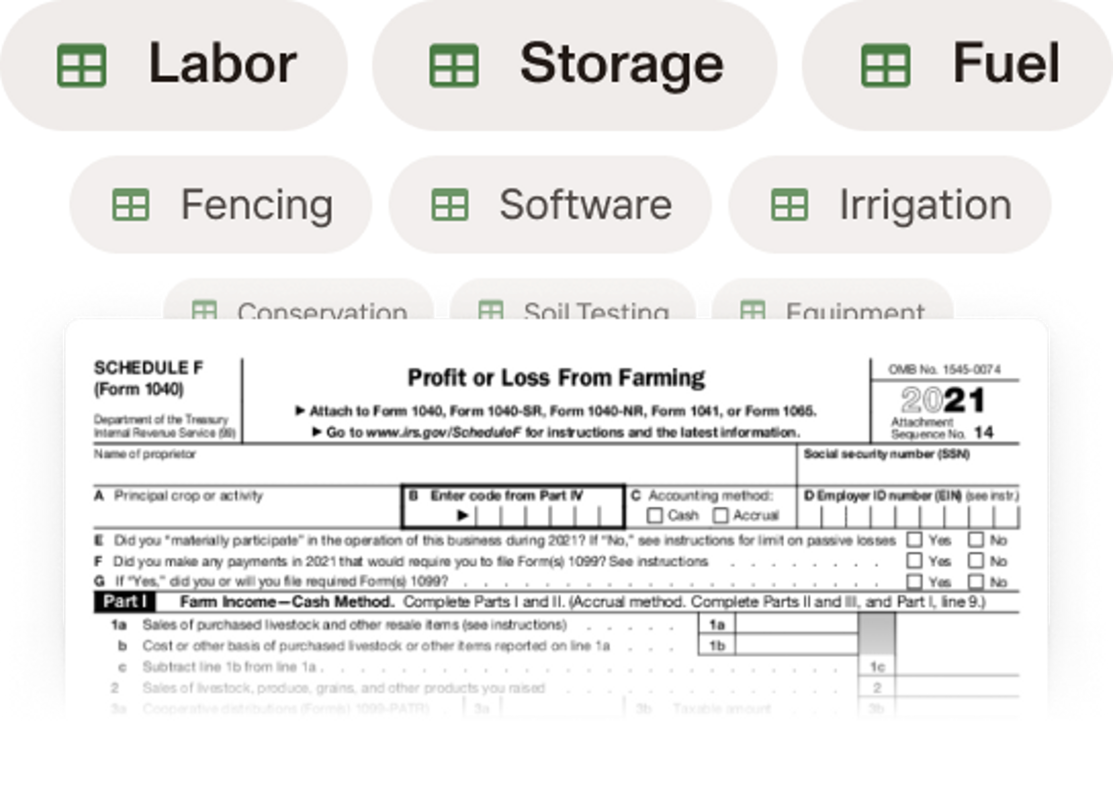 Quickly categorize transactions to generate ag forms like Schedule F and financial statements.