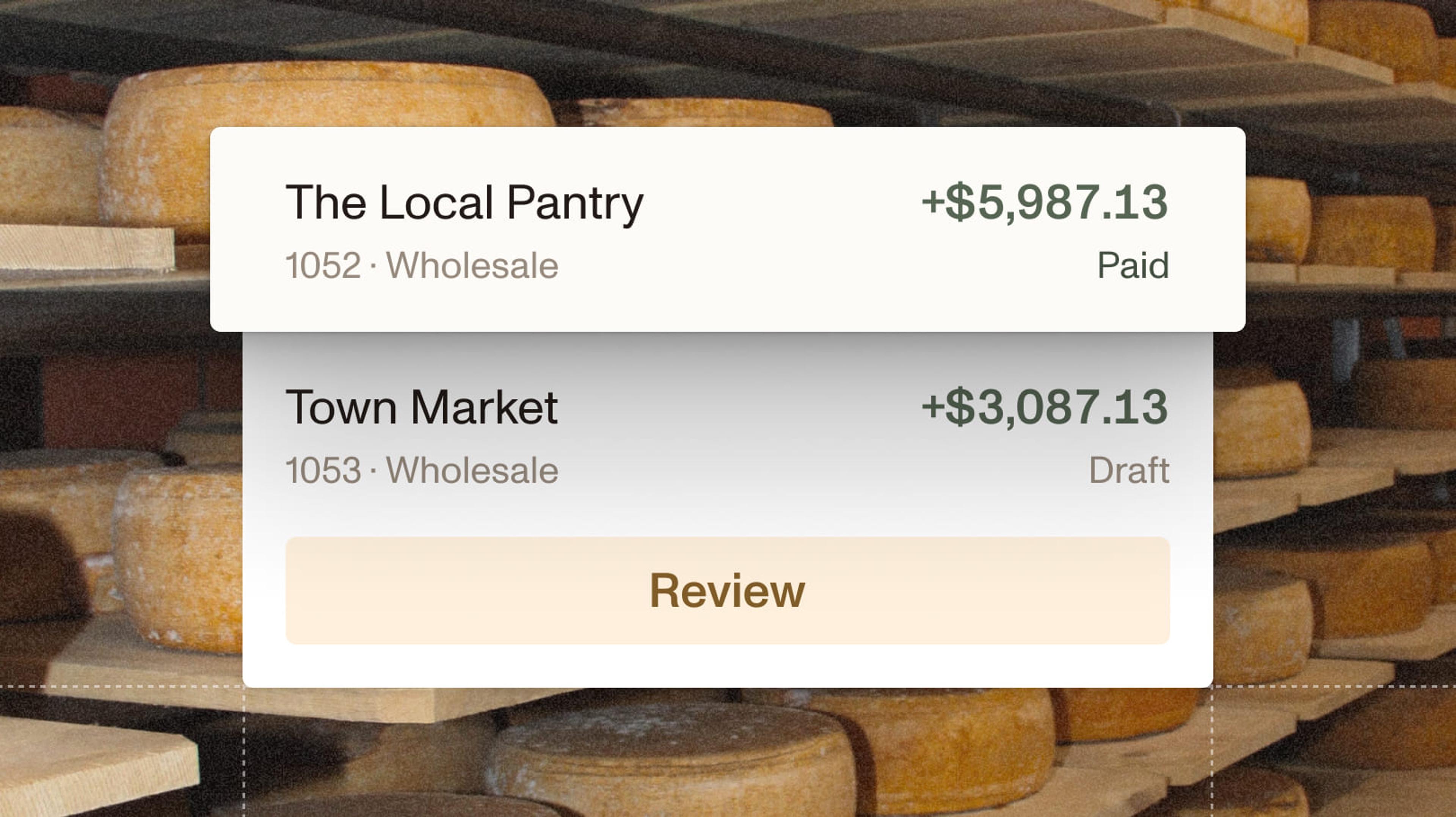 Handle your back office from the kitchen, field, cellar, market, processing facility... wherever you do business. Use the mobile app to capture receipts, issue invoices, pay bills, and more all with a few taps.